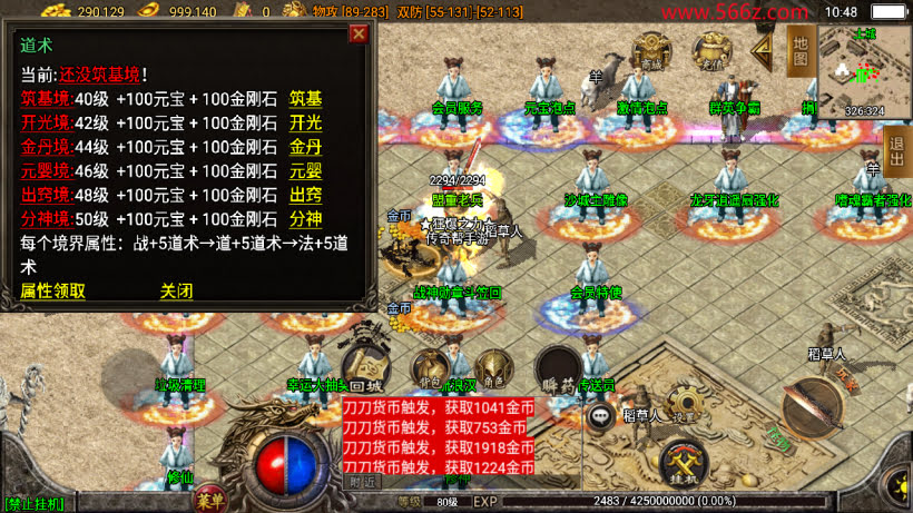 在土城安全区内,打怪地图和功能性的也很多,版本里面主要消费的货币就是金币,版本还有一个特别之处,就是打任何怪物,都可以直接增加金币,这个功能是帮主第一看到,挺有意思的,不需要玩家去捡取金币,而是直接增加到身上,之前看到一些端游才有这个功能,版本默认没有苹果客户端,安卓也无法安装,帮主已经修复了,其他的细节,喜欢的自行搭建测试。